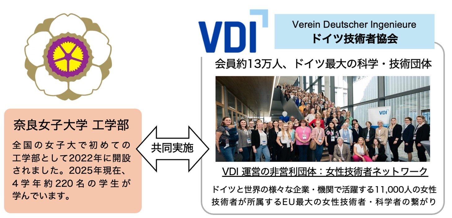 令和7年度(2025年度)より、ドイツ技術者協会(VDI: Verein Deutscher Ingenieure e.V.)の女性技術者ネットワークと協力し、さまざまな企業の支援のもと、日本とドイツの工学を学ぶ女子学生が相互交流するプログラムを開始します。