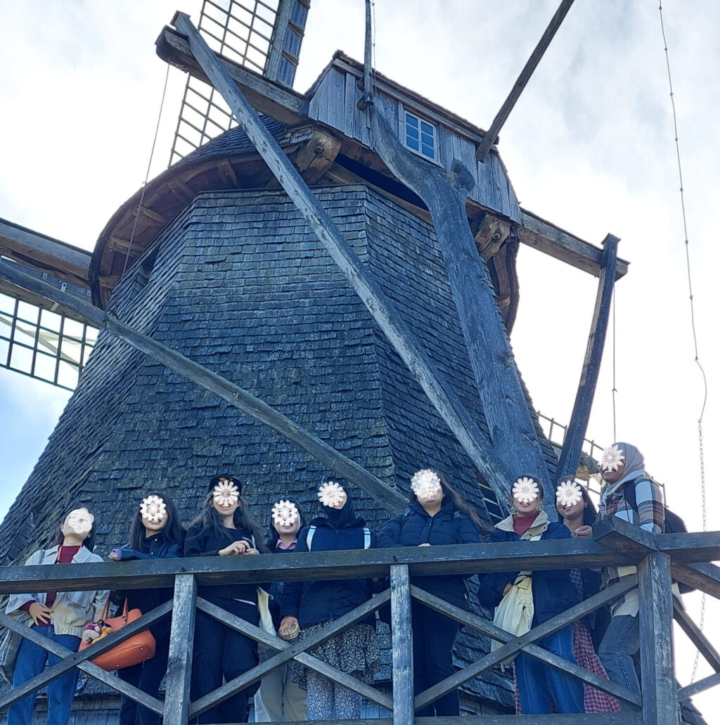 デトモルト野外博物館では昔のドイツの建物(家や家畜小屋)を見ることができ、馬・ガチョウなどもいた。水車の建物で小麦をすりつぶしていた装置は日本でもお米の籾をとるために昔使われていたものととても似ていて驚いた。模型でしか見たことがなかったが、実際にはとても大きな力が水力で生み出されているとわかった。弥生時代の頃の建物は日本(日本でいえばもう少し後の時代ではあるが)と作りが似ていて、同じような歴史を辿って今があるのだと知った。家を暖かくするための煙を使って肉などを燻製にしており、天井高くに吊るしているのはネズミやヒトに食べられないようにするためだと聞きくすっと笑ってしまった。お昼ごはんはドイツのメンバーがアラブ料理店に連れて行ってくれた。ハラルやベジタリアンのメンバーにとってはよく行くお店だそう。初めてのアラブ料理はとてもおいしかった。デトモントは外国人観光客があまりいない町で、地元の方ばかりといった感じで新鮮だった。