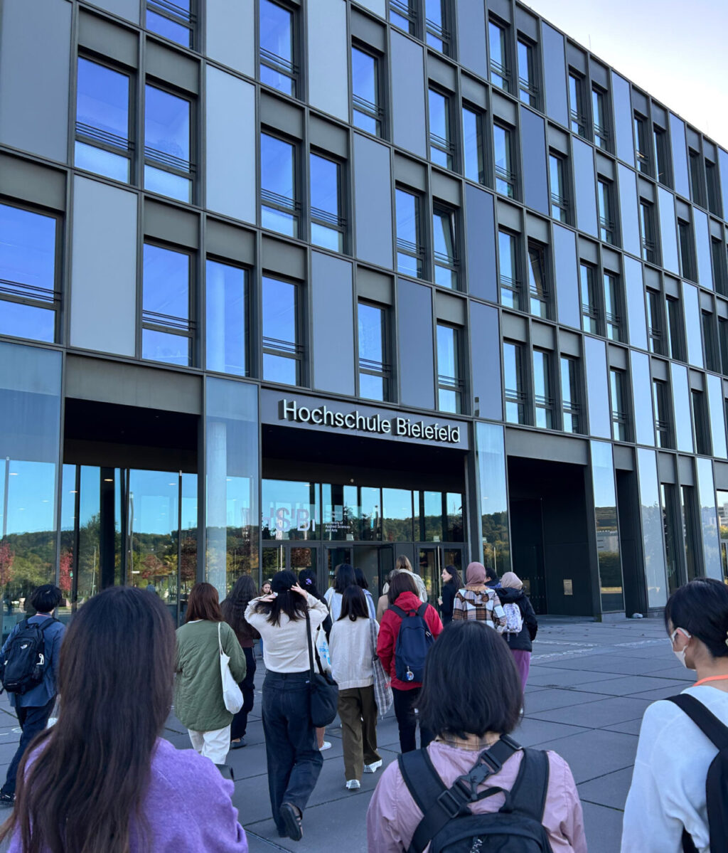 今日はビーレフェルト応⽤科学⼤学に訪問し、まずは女性の平等や教育支援制度について学びました。ドイツではファミリーフレンドリーな体制など、日本以上に支援が整っていると感じました。そして、その支援を直接受ける立場ではない学校の学生たちも、その仕組みをよく理解していることに驚きました。少数派の女性一人の力では社会を変えることは難しいですが、200万人の組織になれば変えられるという言葉がとても印象的でした。さらに、ビーレフェルト工科大学についても学びました。ドイツやアメリカでは、PBL(Project Based Learning)がエンジニア教育の基本となっており、大学の授業以外にも半年間の企業インターンシップを経て卒業するという仕組みがあるそうです。とても実践的で優れたシステムだと感じました。研究室見学では、医工学エリアの研究室を見せてもらい、自分たちの学校でやっていることと同じところや違いを感じ、とても面白かったです。最後に、レクチャーが終わった後に拍手ではなく、テーブルをノックするのがドイツ式だと知り、面白い文化だと思いました。これまで知らなかった習慣に触れ、視野が広がった一日でした。