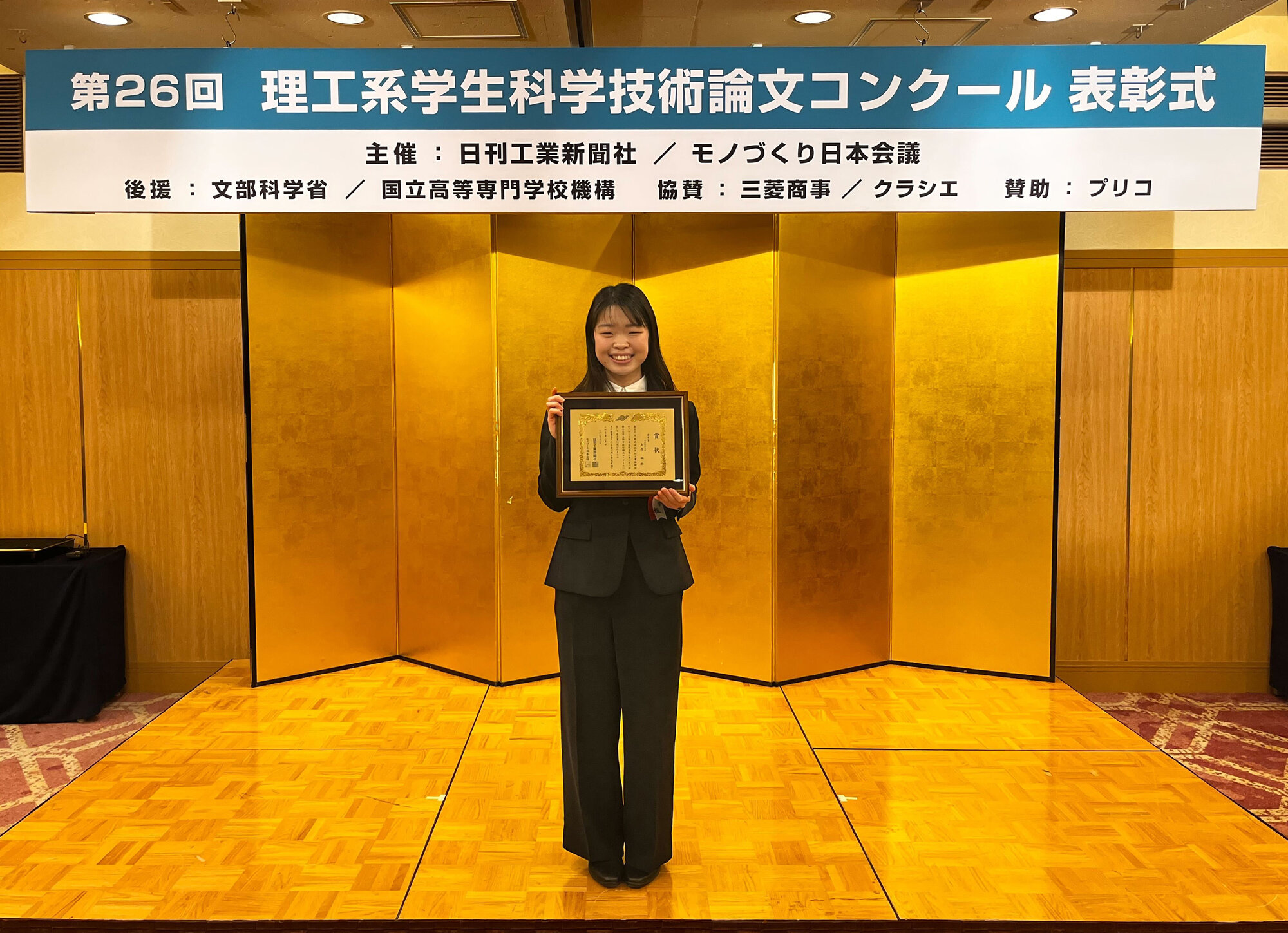 日刊工業新聞社が主催する、工系大学生・大学院生(修士課程)と高等専門学校生を対象にした「理工系学生科学技術論文コンクール」にて以下の通り学生が受賞し、東京都内で表彰式が行われました。