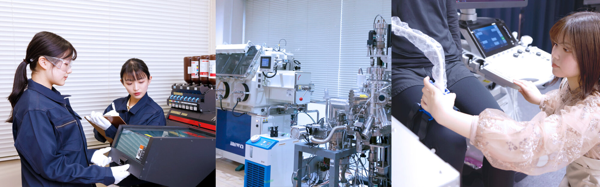 材料工学エリアは、有機化学、無機化学、物理化学、高分子工学の観点から、分子レベルや原子レベルで工業製品の基盤になる材料を研究しています。